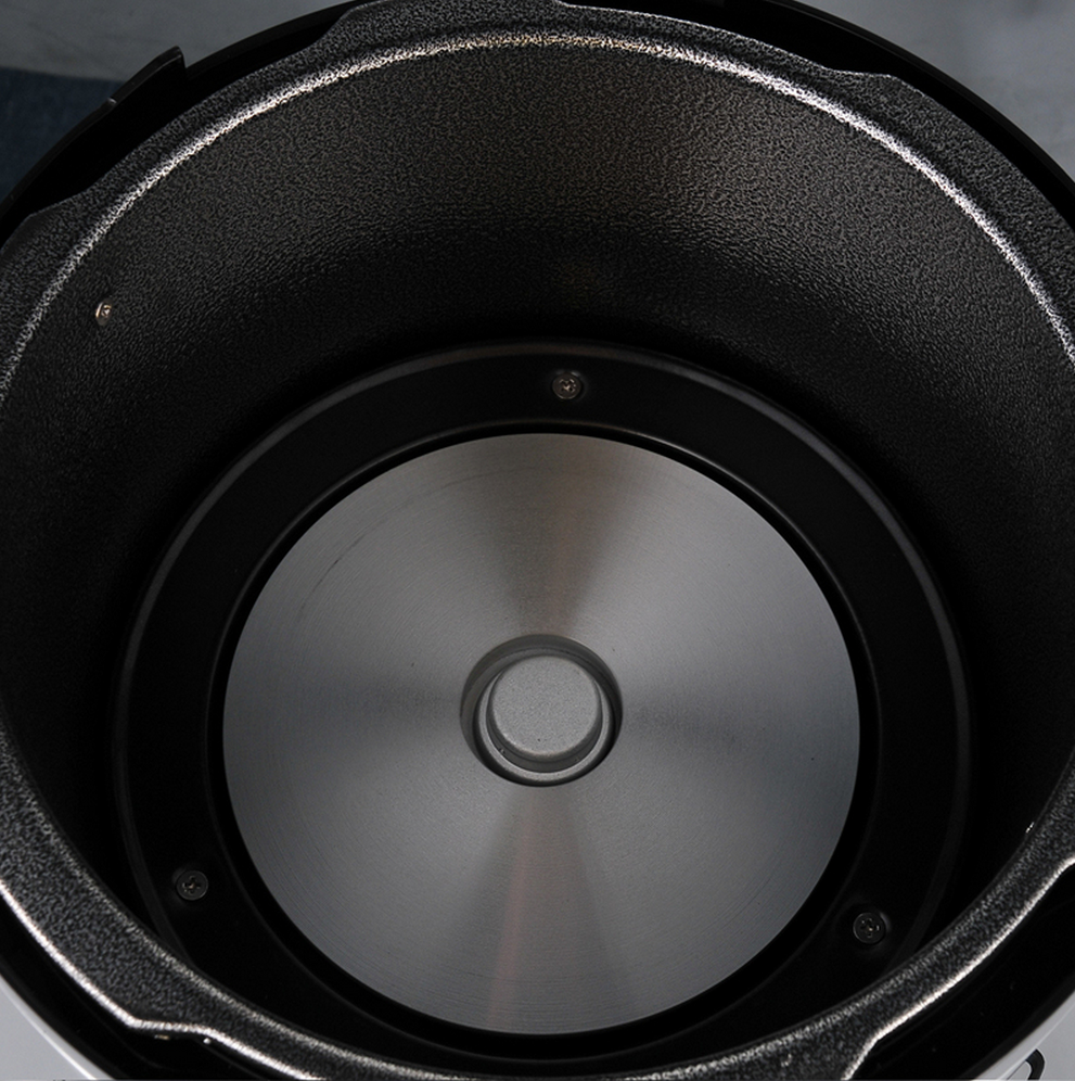 Vamos agora para a parte interna. Dentro da panela fica a cuba, a cuba é onde preparamos todos os limentos, essa cuba também é removível e facilmente colocada e retirada dentro da panela.