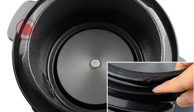 Tudo que cai nessa canaleta é direcionado para um reservatório coletor que fica na lateral da panela, esse reservatário e removível, e o ideal é que seja retirado e lavado sempre que tiver água ou algum caldo do alimento dentro, depois reposicionado no mesmo lugar.